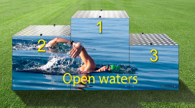 This type of atmosphere that invariably accompanies swimming sports demands materials, as in the case of the winners podiums, especially resistant. If we exclude competitions in pools that can have a fixed podium, the rest of the specialties, at the time of performing the awards ceremony, needs the disposition of a winners podium for the awards ceremonies.